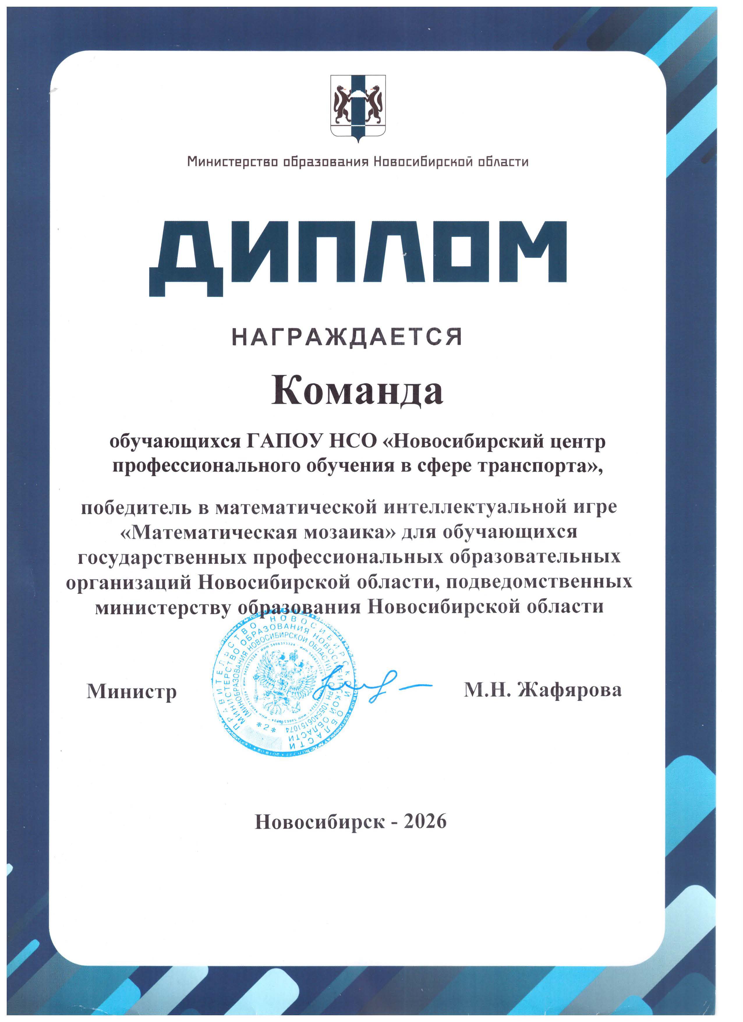 Диплом победителя в метематической интеллектуальной игре "Математическая мозайка"
