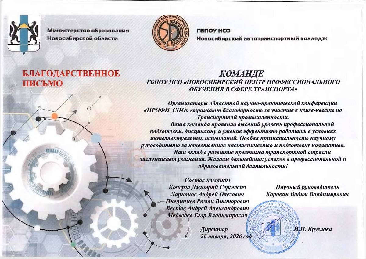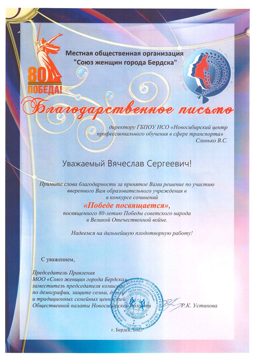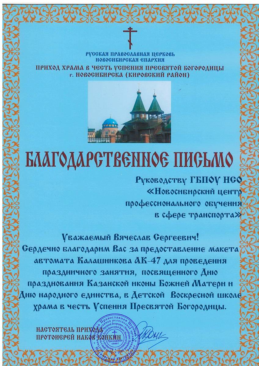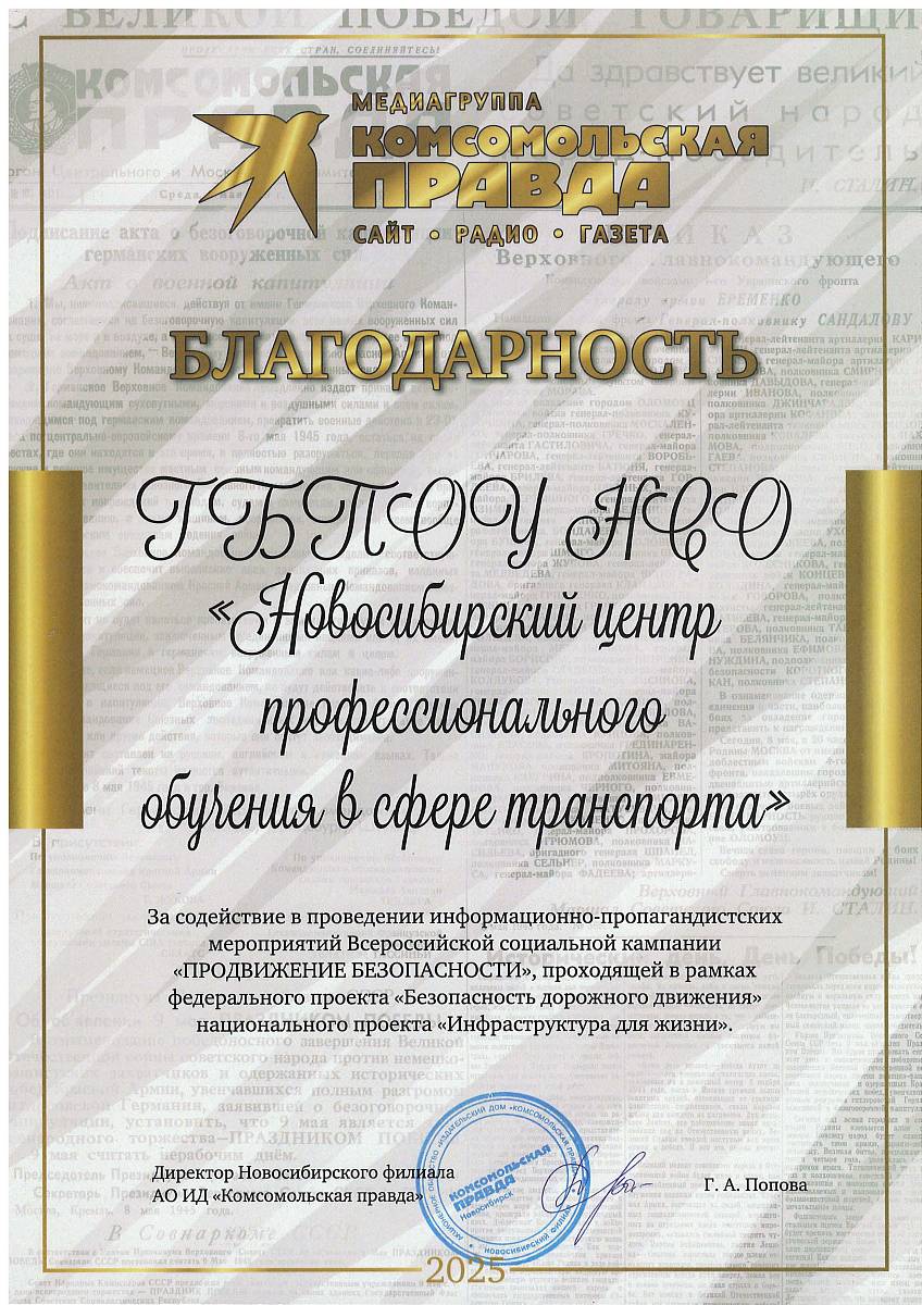 Благодарность от Комсомольской