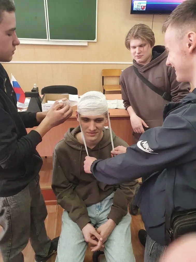 Теоретические знания были успешно закреплены их практическим применением с использованием подручного перевязочного материала.