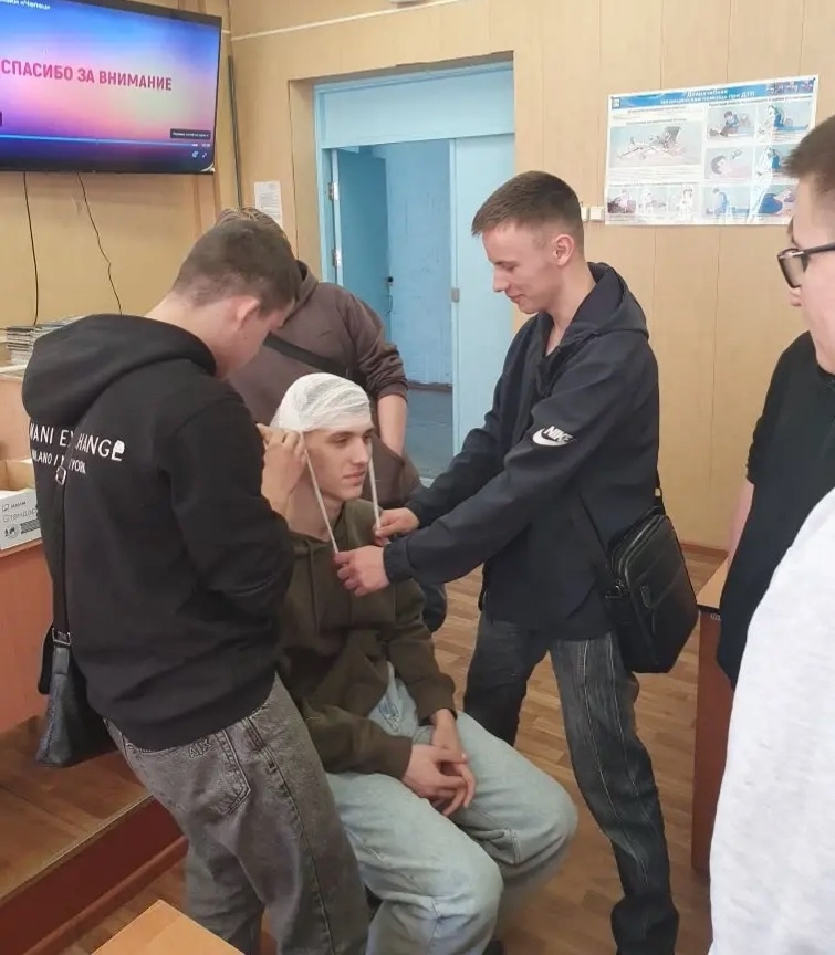 Очень увлекательно и познавательно проходят практические уроки ОБЗР в студенческих группах. Например, по теме «Оказание доврачебной помощи при ранении в голову», где ребята подробно изучали метод наложения повязки методом шапочки Гиппократа.