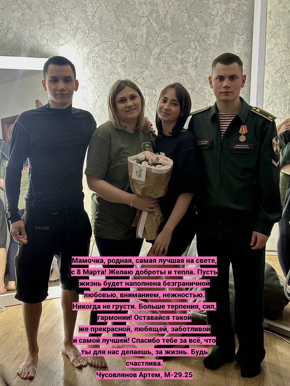 В преддверии 8 Марта, мы провели онлайн-акцию фотографий "Мамина улыбка - лучшая на свете" и сегодня дорогие мамы, от лица самых главных защитников, ваших сыновей, в самый весенний и праздничный женский день, мы хотим поздравить каждую из вас с Международным женским днем, сказать самые теплые слова любви и благодарности за то, что вы есть!