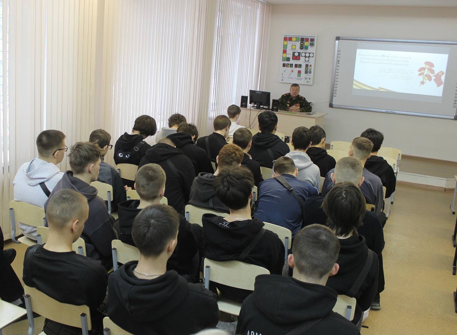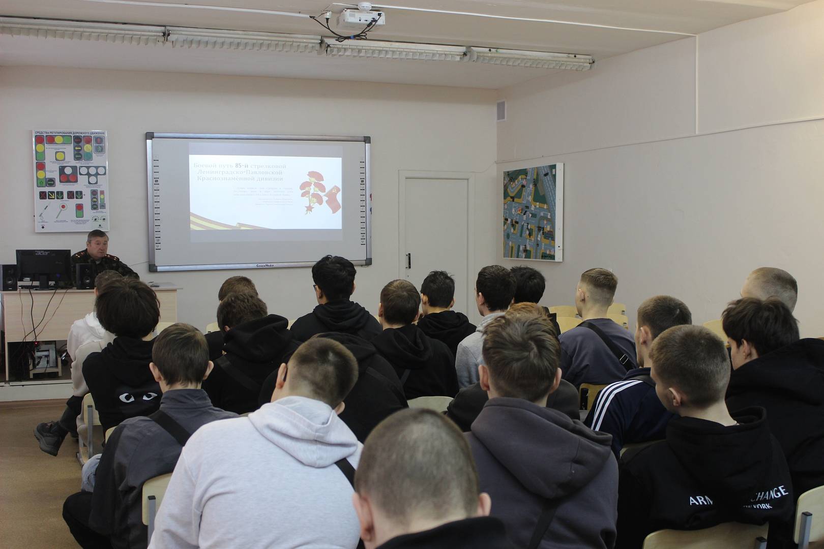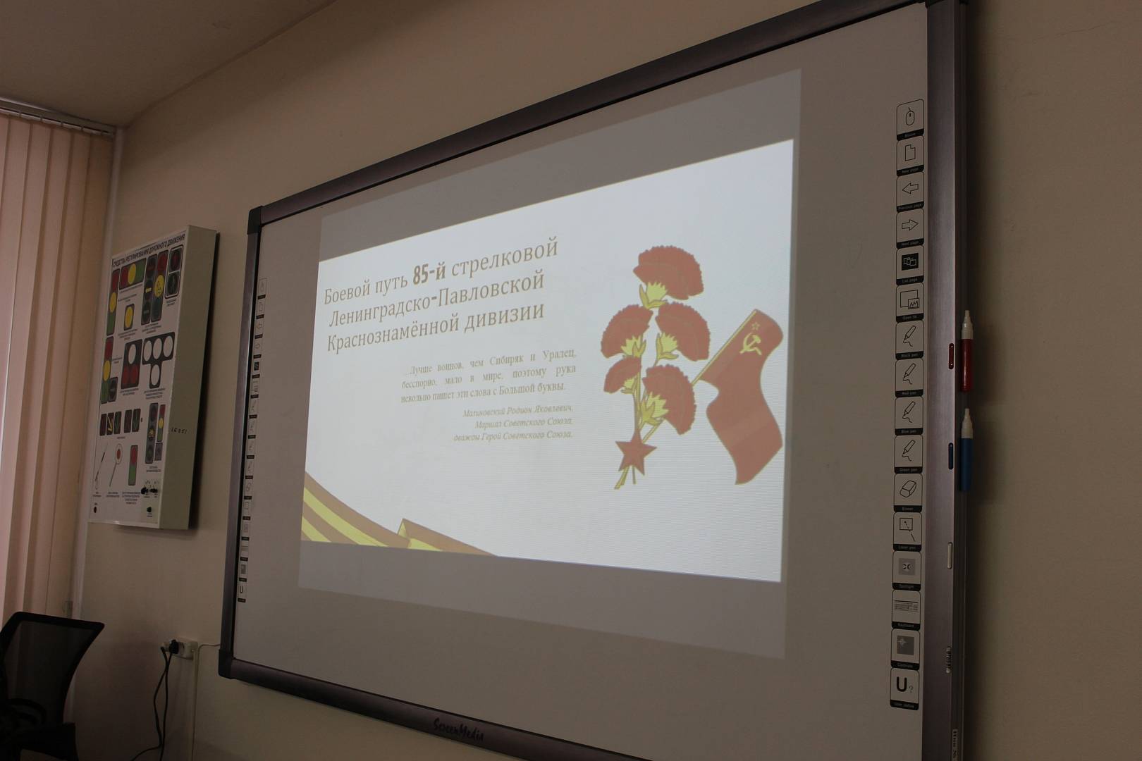 Преподаватель Голубев Вячеслав Аркадьевич, подполковник запаса, ветеран боевых действий, на очередной встрече поделился с ребятами информацией о боевом пути 85 мотострелковой дивизии, которая дислоцировалась в Новосибирске.