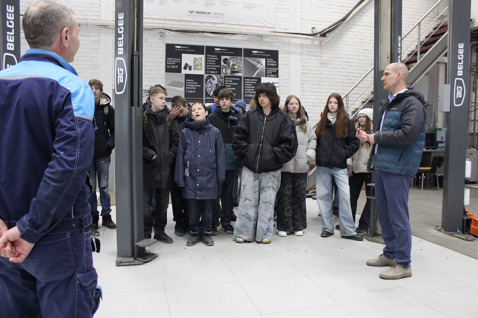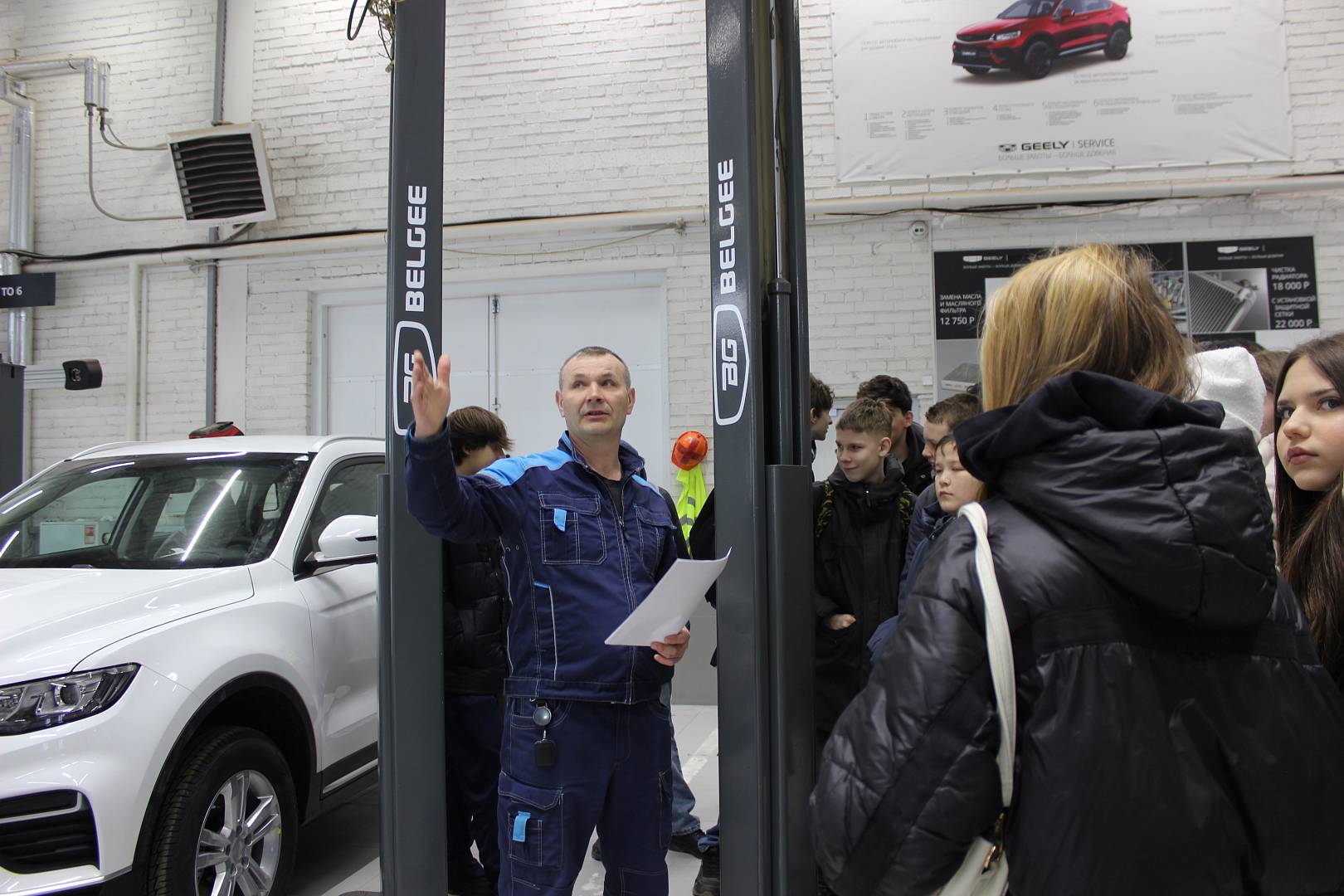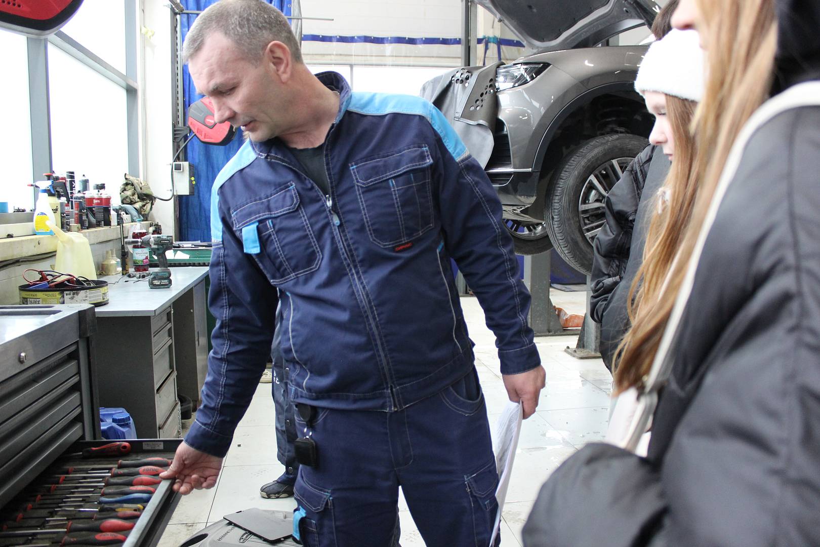 За время экскурсии школьники узнали о комплектации различных автомобилей, о способах технического обслуживания, возможности заключения договора о целевом обучении, трудоустройстве, а также условиях получения специальности в рамках федерального проекта "Профессионалитет".