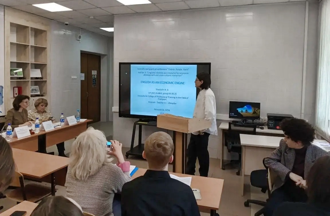 Секция 3: «Языковое разнообразие как ресурс развития экономики и межкультурного взаимодействия» (доклады на иностранном языке). Студенты 1 курса: Ратмир Ипатьев, Владислав Морозов и Никита Шайдулин (научный руководитель преподаватель Д.И. Жмайлов Д.И.). Для выступления и очной защиты составом жюри отобрано всего 10 работ, из которых 2 работы представили наши студенты. Ребята состязались в мастерстве презентации докладов со студентами других 8 колледжей г. Новосибирска: «Новосибирский колледж электроники и вычислительной техники», «Новосибирский электромеханический колледж», «Новосибирский колледж промышленных технологий», «Новосибирский профессионально-педагогический колледж», Новосибирский авиационный колледж имени Б.С. Галущака», Новосибирский торгово-экономический колледж», Новосибирский химико-технологический колледж» и Сибирский геофизический колледж»)